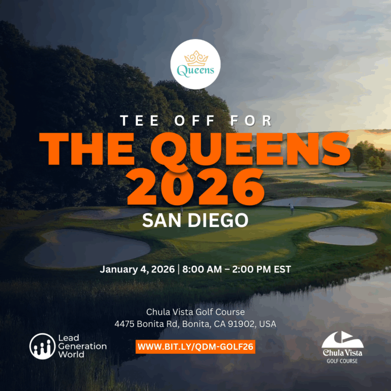 - Join us in sunny San Diego during Lead Gen World for our 3rd annual tournament! Tee off at 8:00 AM, and enjoy a day of golf, fellowship, and giving back.Sponsorships are a great way to showcase your company while supporting the Queens Arise Program, helping survivors of human trafficking build a brighter future. Swing with us and make a difference!Not a golfer? You can still support your Queens! Join the Golf Committee, share the event on your socials, or volunteer with Queens as a mentor, guest speaker, or instructor. Click here to get involved: https://bit.ly/QDM-Allies